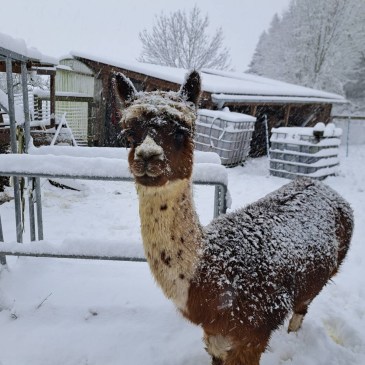 Rama-Lama-Ding-Dong! Oder: Warum ein Winterspaziergang in Begleitung der Lama-Lady und ihrer Tiere so ein unvergessliches Erlebnis ist … Mehr Tür 3: Winterwanderung mit Lama